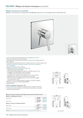 • À compléter avec pommeau de douche ou sortie murale (voir ci-contre et page 145).