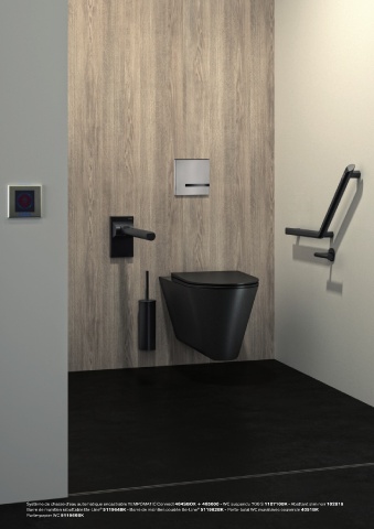 Barre de maintien rabattable Be-Line 511964BK - Barre de maintien coudée Be-Line 511982BK - Porte-balai WC mural avec couvercle 4051BK