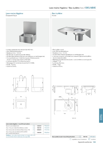 ou robinetterie thermostatique (voir page 88) Bac à plâtre mural - Inox 304 poli satiné 180130 1 474,68 €