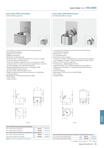 Option : distributeurs de savon (voir page 96) Lave-mains complet avec dosseret 184320 927,98 €