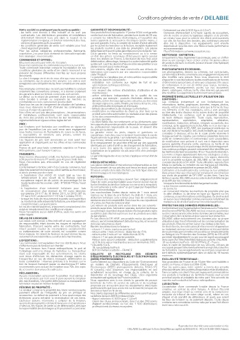 30 Les fabrications DELABIE sont conçues pour durer le plus longtemps possible. - les conditions générales de vente sont valables pour tout par le cachet du revendeur ou la facture, exceptés également dépollués et recyclés dans une filière à haute performance