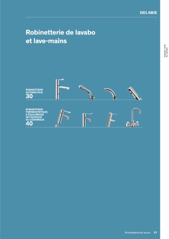 Robinetterie de lavabo et lave-mains ROBINETTERIE DE LAVABO ROBINETTERIE AUTOMATIQUE 30 ROBINETTERIE THERMOSTATIQUE, À ÉQUILIBRAGE DE PRESSION OU CÉRAMIQUE 40 Robinetterie de lavabo 27