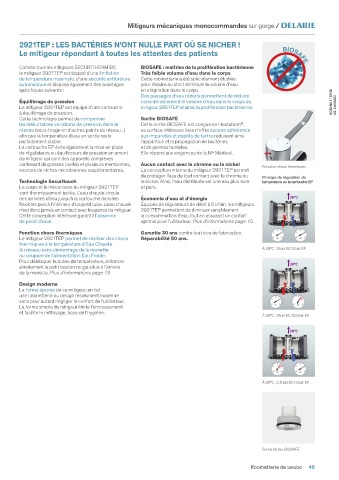 sources de niches microbiennes supplémentaires. La conception interne du mitigeur 2921TEP permet