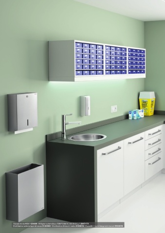 Vasque ronde HEMI 120490 - Mitigeur automatique TEMPOMATIC MIX BIOCLIP 20871T3 Distributeur automatique de savon 512066S - Distributeur d'essuie-mains 510601S - Poubelle Inox rectangulaire murale 510461S