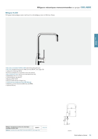 • Bec tube orientable H.220 L.200 avec brise-jet hygiénique.