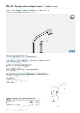 Robinetterie SECURITHERM à douchette extractible H.195 L.215