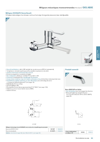 • Sécurité antibrûlure : débit d’EC restreint en cas de coupure d’EF (et inversement). Produit associé