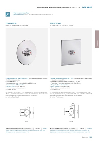 Robinet TEMPOSTOP encastrable avec rosace 749128 132,88 € Robinet TEMPOSTOP encastrable avec plaque 749628 132,88 €