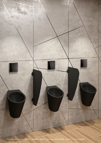 Robinet d’urinoir automatique TEMPOMATIC 4 430SBOX + 430030 - Urinoir suspendu FINO 135710BK - Séparateur d'urinoir AZA 100620BK