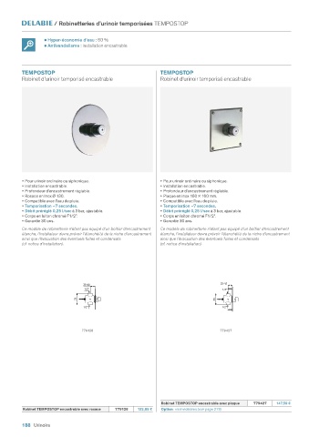 Robinet TEMPOSTOP encastrable avec rosace 779128 132,88 € Option : vis inviolables (voir page 273)