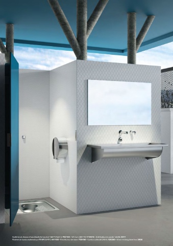 Robinet de lavabo automatique TEMPOMATIC 441100 - Distributeur de savon 729150 - Lavabo collectif CANAL 120250 - Miroir rectangulaire Inox 3458