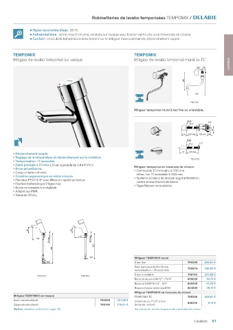 Robinetteries de lavabo temporisées TEMPOMIX /