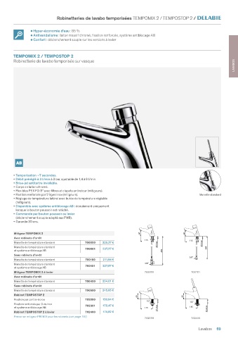 Robinetteries de lavabo temporisées TEMPOMIX 2 / TEMPOSTOP 2 /