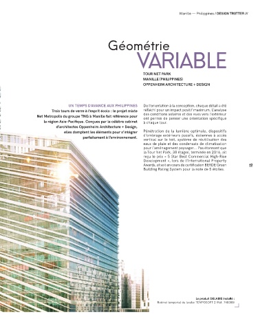 UN TEMPS D’AVANCE AUX PHILIPPINES De l’orientation à la conception, chaque détail a été