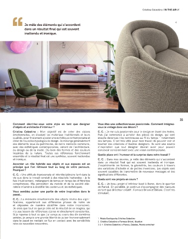 Cristina Celestino : Mon objectif est de créer des visions C. C. : Je me suis passionnée pour le design en lisant des textes.