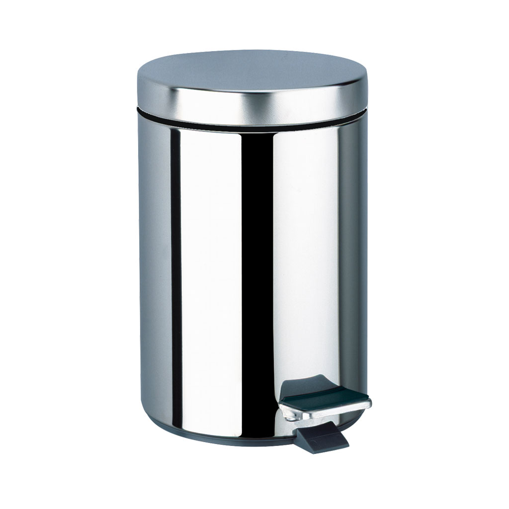 Poubelle de salle de bains à pédale, ronde Inox, 5 litres