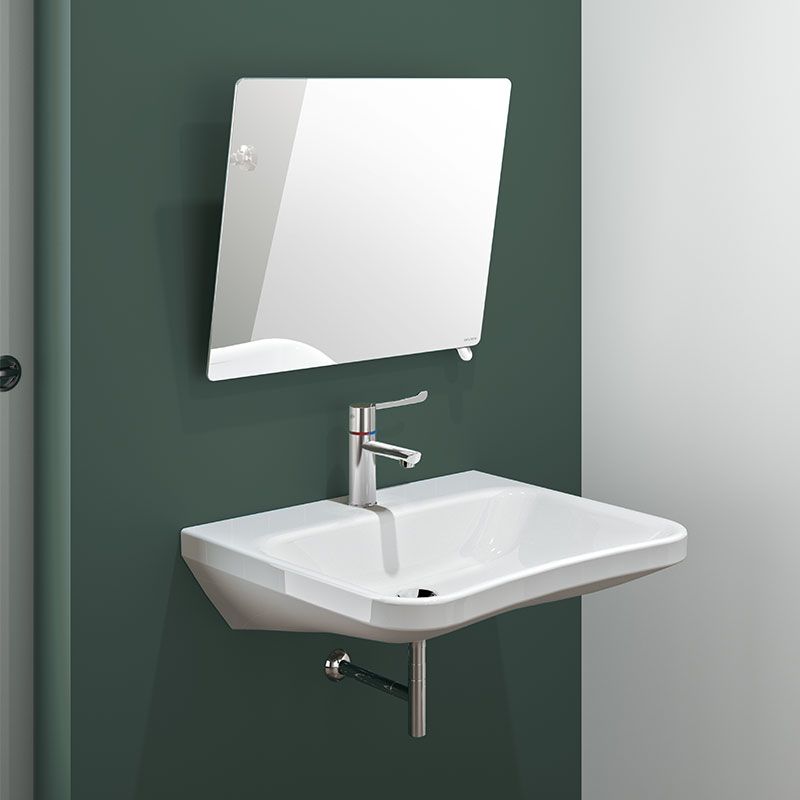 Réf. 510202PMiroir mural rectangulaire inclinable avec poignée permettant l'inclinaison du miroir pour des personnes en position assise ou en fauteuil.