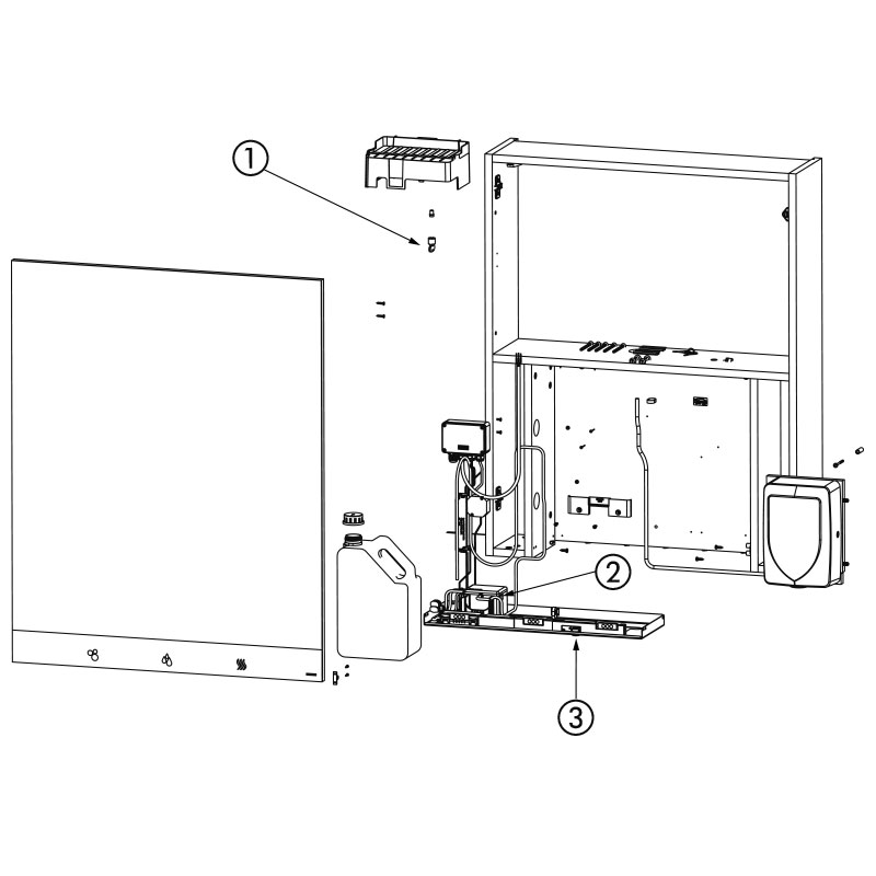 Miroir verre de 4 mm d’épaisseur et bandeau de verre noir avec pictogrammes lumineux.
