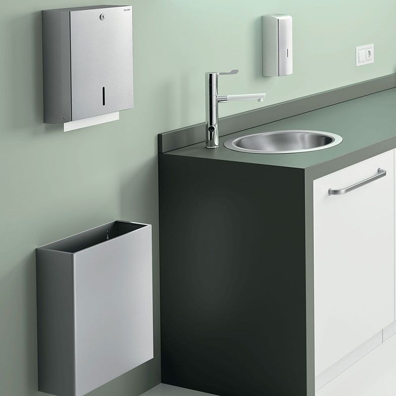 Réf. 510461SPoubelle inox rectangulaire murale pour essuie-mains et papiers usagés.