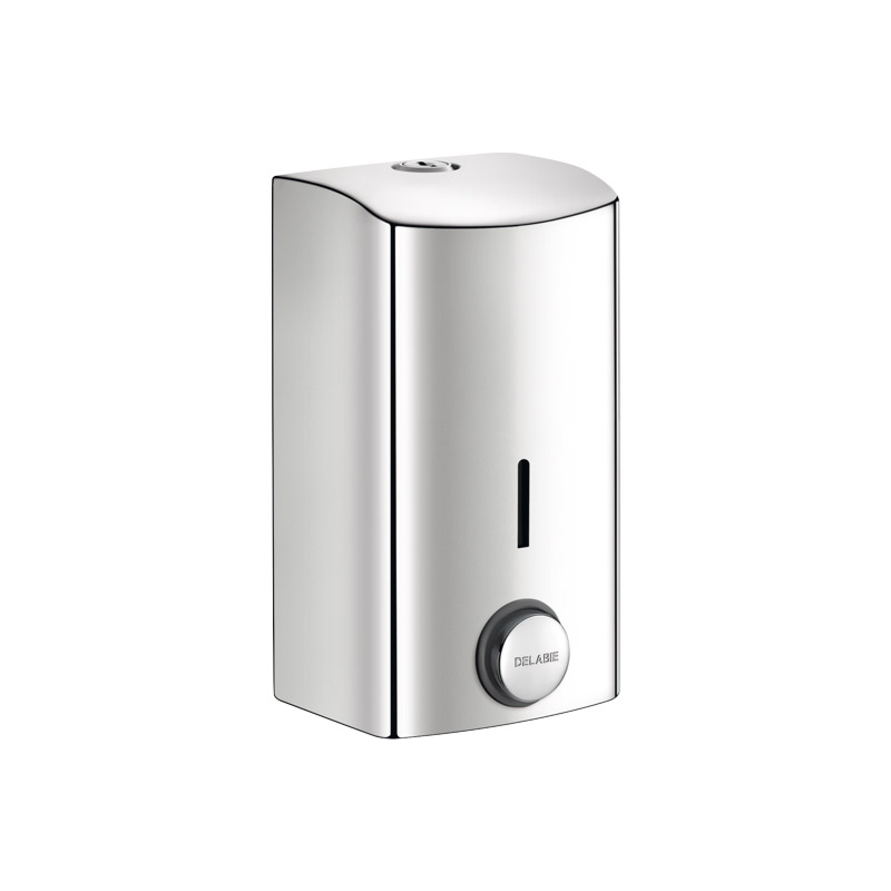 Distributeur de savon mural à déclenchement souple.