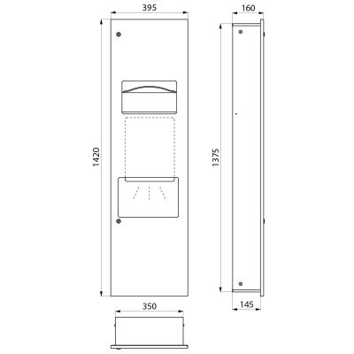 Réf. 510716SCombi poubelle encastrable et distributeur d’essuie-mains et sèche-mains.