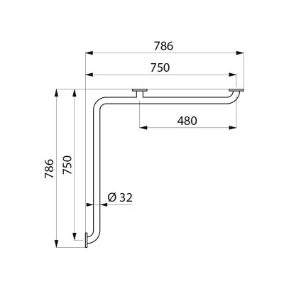 Réf. 5120SBarre de maintien d'angle 2 murs Ø 32, pour personne à mobilité réduite (PMR).