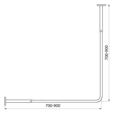 Tringle pour rideau de douche d'angle en Inox 304 poli brillant.
