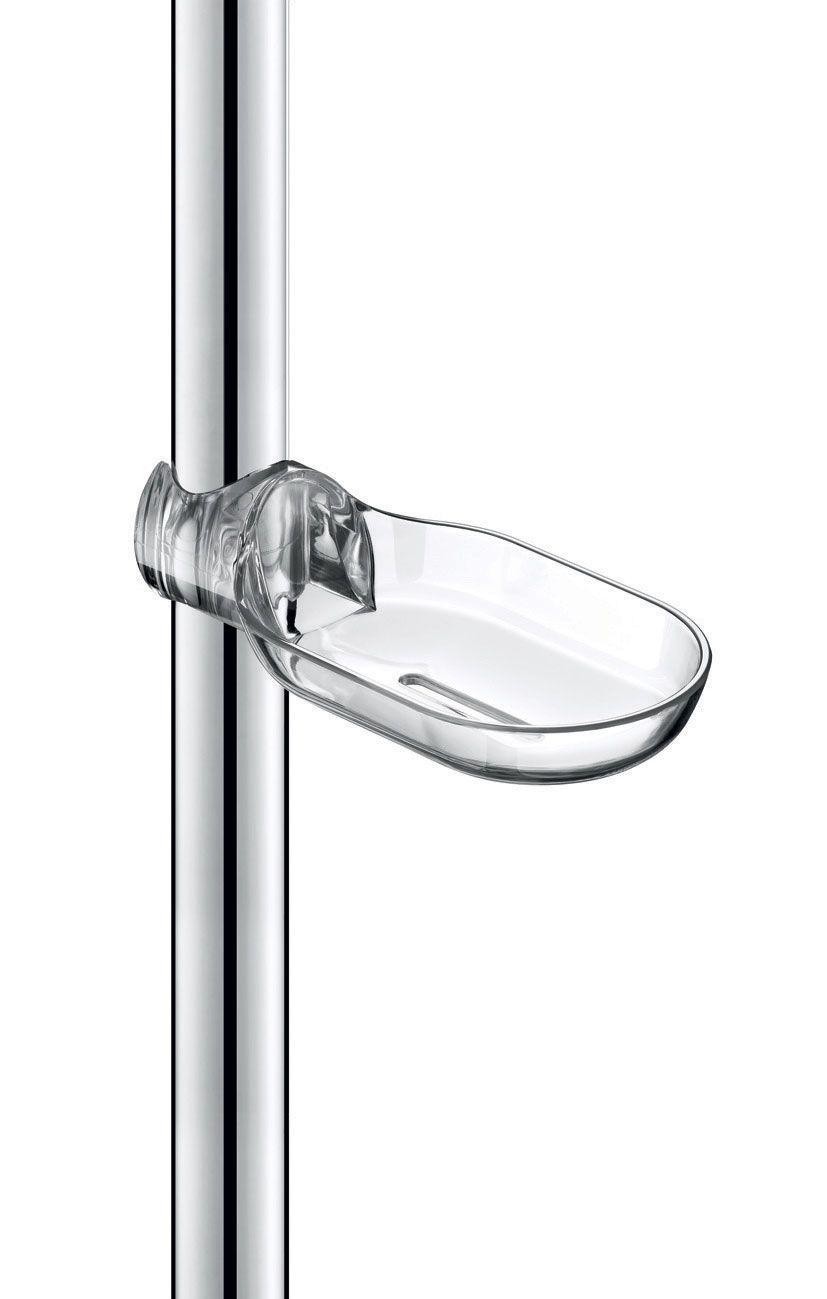 Réf. 510120Porte-savon pour barre de maintien, coulissant clipsable translucide.