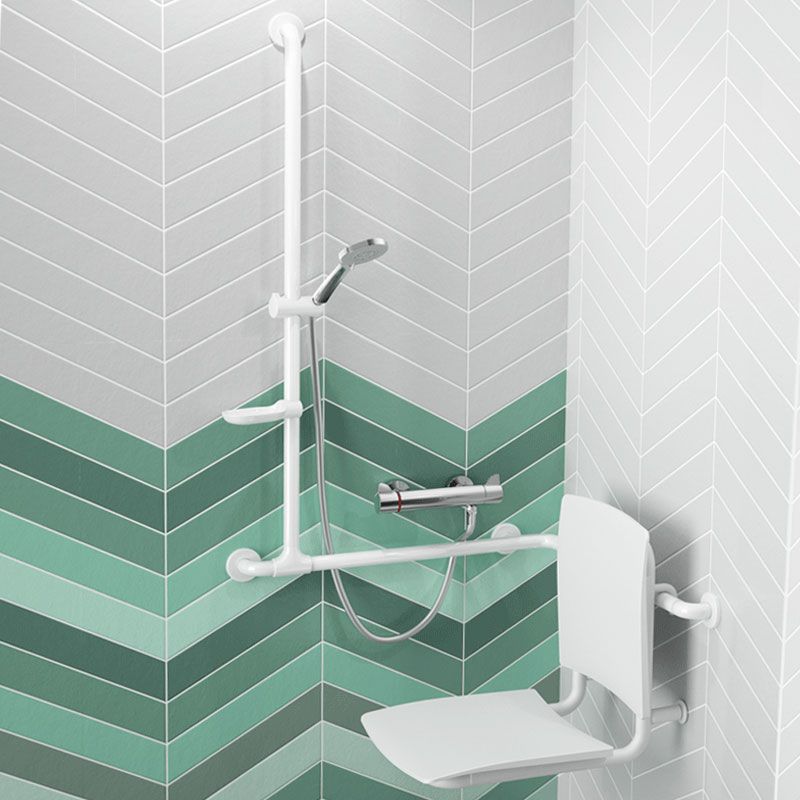 Réf. 5481NBarre de douche d'angle 2 murs avec remontée verticale coulissante Ø 32, pour personne à mobilité réduite (PMR).