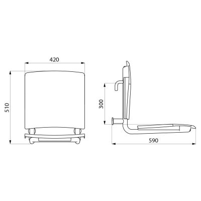 Siège de douche à accrocher sur barre de maintien Ø 32 (voir réf. 5481P, 5120P2 et 50505P2).