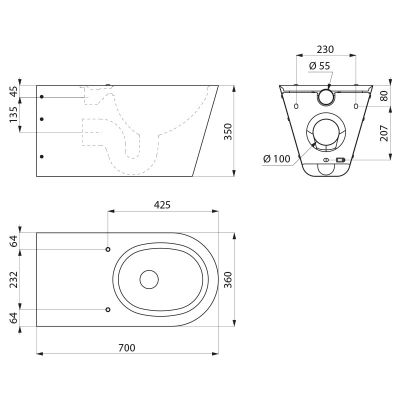 Réf. 110710WC suspendu, 360 x 350 x 700 mm.