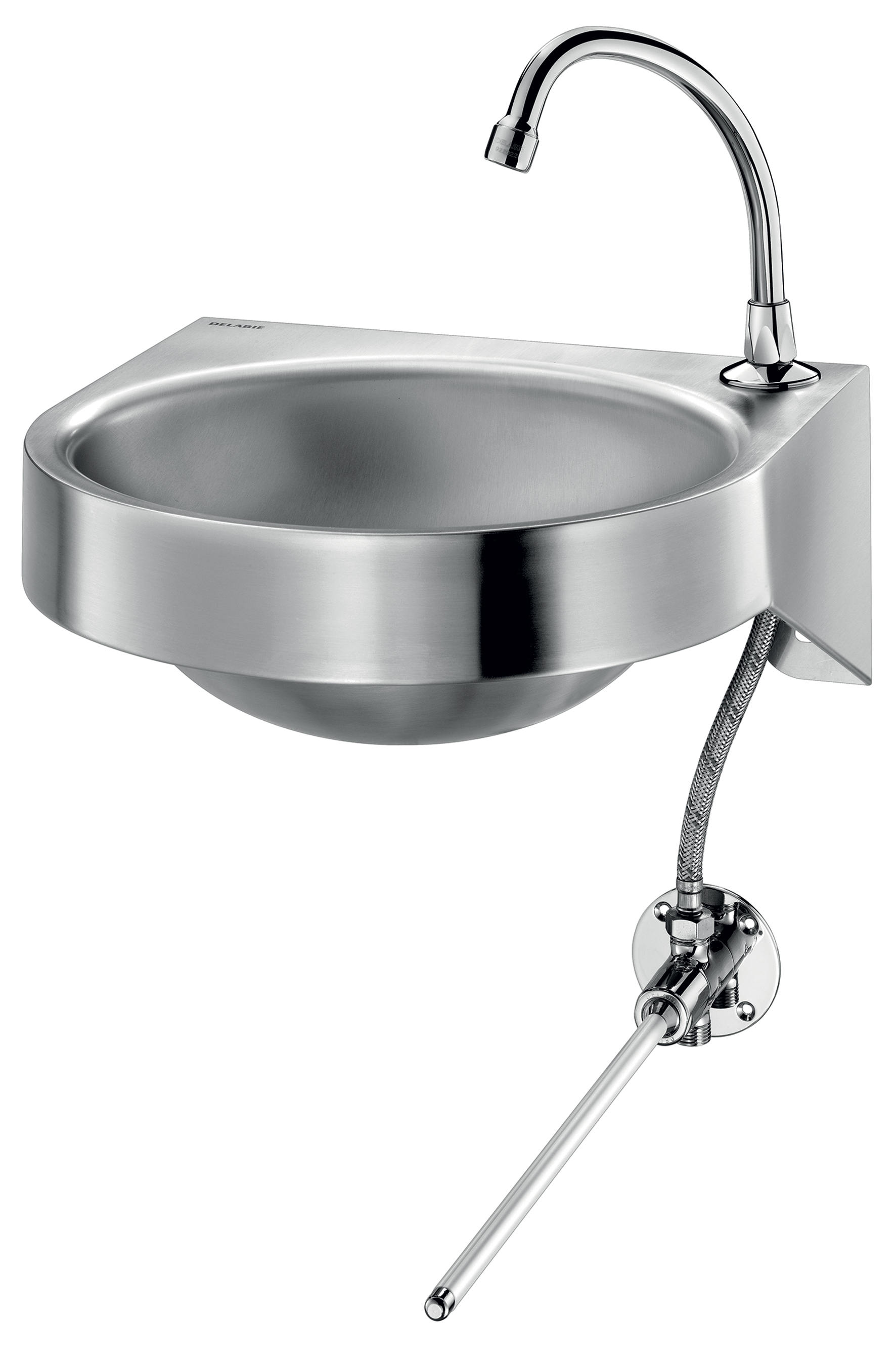 Réf. 180330Lave-mains à accrocher au mur avec commande au genou/commande fémorale.