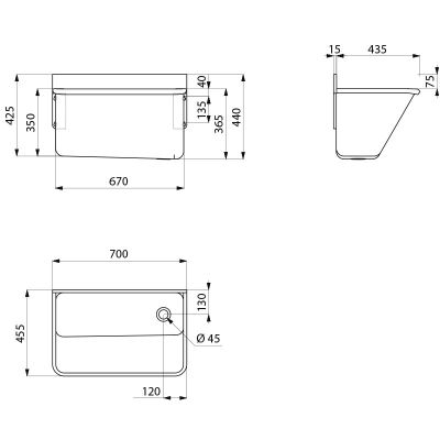 Réf. 181020Auge chirurgicale murale avec dosseret de 75 mm.