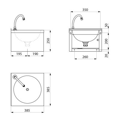 Réf. 182310Lave-mains à accrocher au mur avec commande au genou.