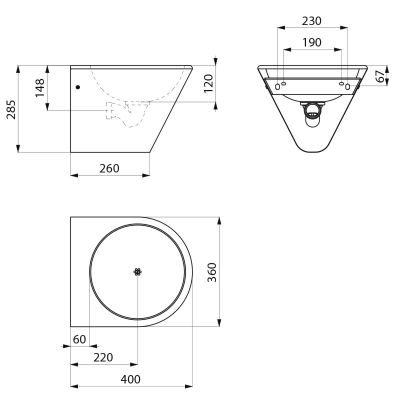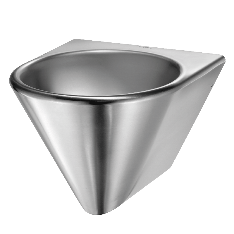 Antivandalisme : lavabo fermé en dessous, siphon caché.