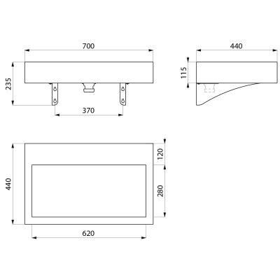 Réf. 120150Lavabo à accrocher au mur, 700 x 440 mm.