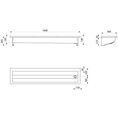 Réf. 120280Lavabo collectif à accrocher au mur, 3-4 places - 1800 mm.