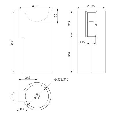Réf. 120720Lavabo sur pied, hauteur 830 mm. Diamètre intérieur du lavabo : 310 mm.
