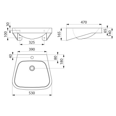 Réf. 121430Lavabo à accrocher au mur, 530 x 470 mm.