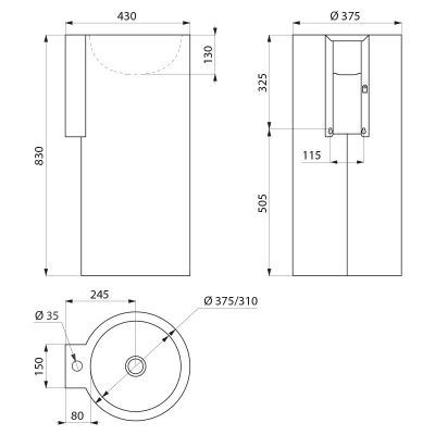 Réf. 121720Lavabo sur pied, hauteur 830 mm. Diamètre intérieur du lavabo : 310 mm.