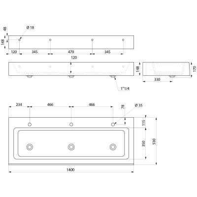 Réf. 453140Lavabo collectif à accrocher au mur, 3 places.