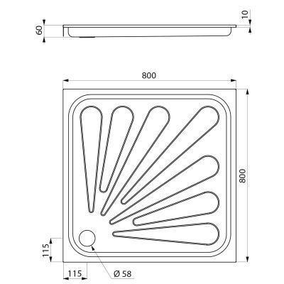 Réf. 150300Receveur de douche à encastrer, 800 x 800 mm.