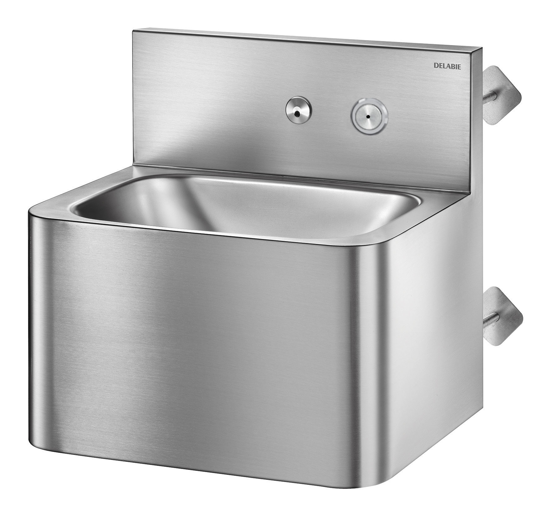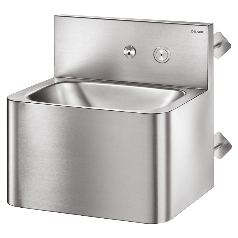 Antivandalisme : lavabo fermé en dessous, évacuation cachée.