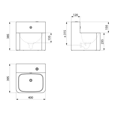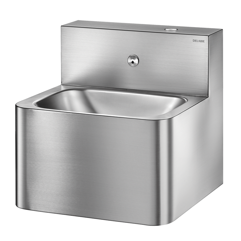 Antivandalisme : lavabo fermé en dessous, siphon caché.