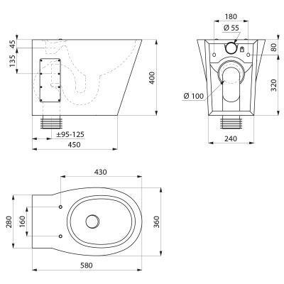 Réf. 110100WC à poser au sol, 360 x 400 x 580 mm.