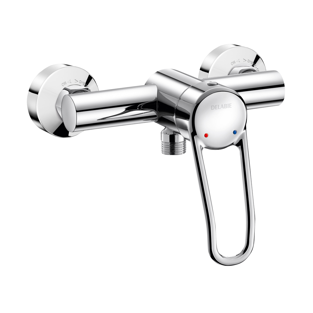 Mitigeur de douche adapté aux personnes à mobilité réduite (PMR).