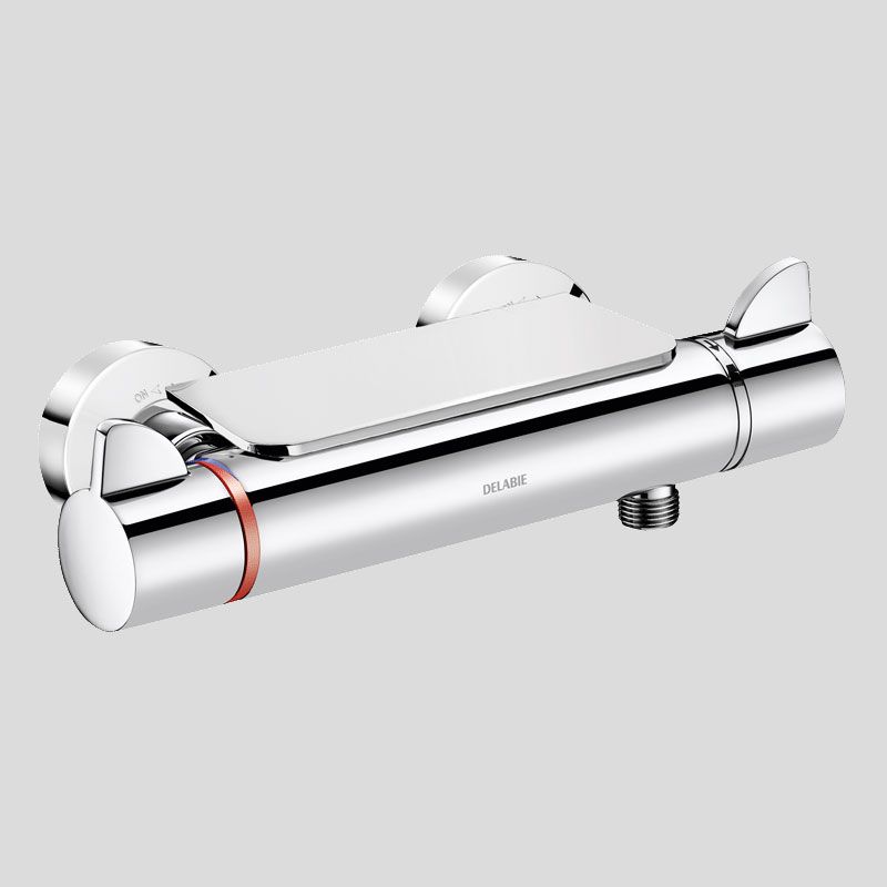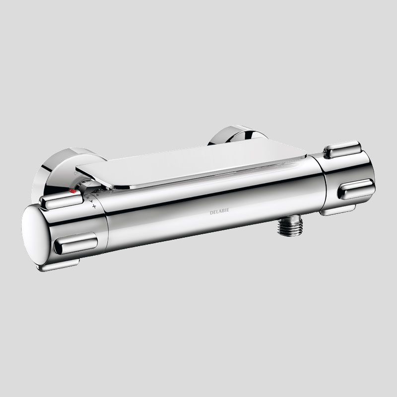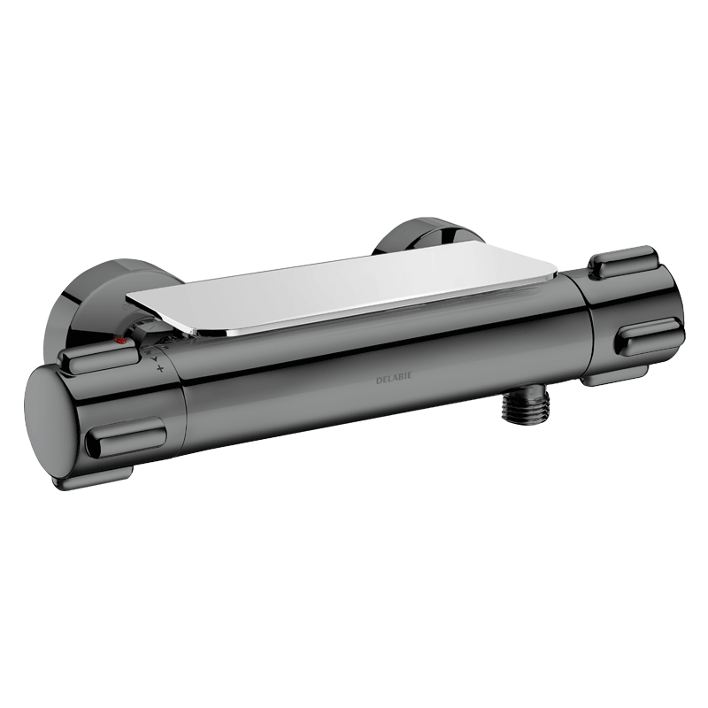 Réf. 850Tablette chromée parfaitement adaptée pour les mitigeurs thermostatiques de douche bicommandes (réf. H9741 et H9739).