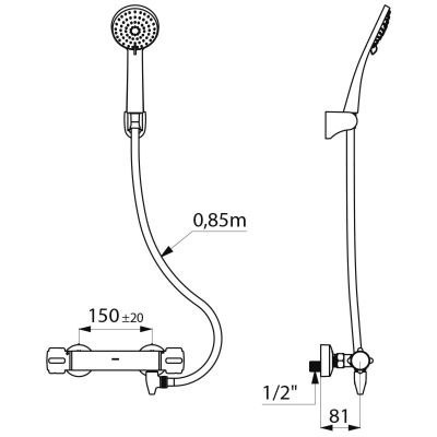 Ensemble de douche avec mitigeur thermostatique SECURITHERM