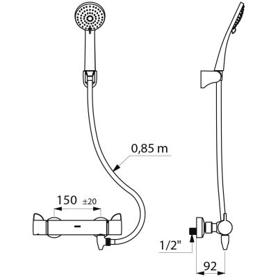 Ensemble de douche avec mitigeur thermostatique SECURITHERM
