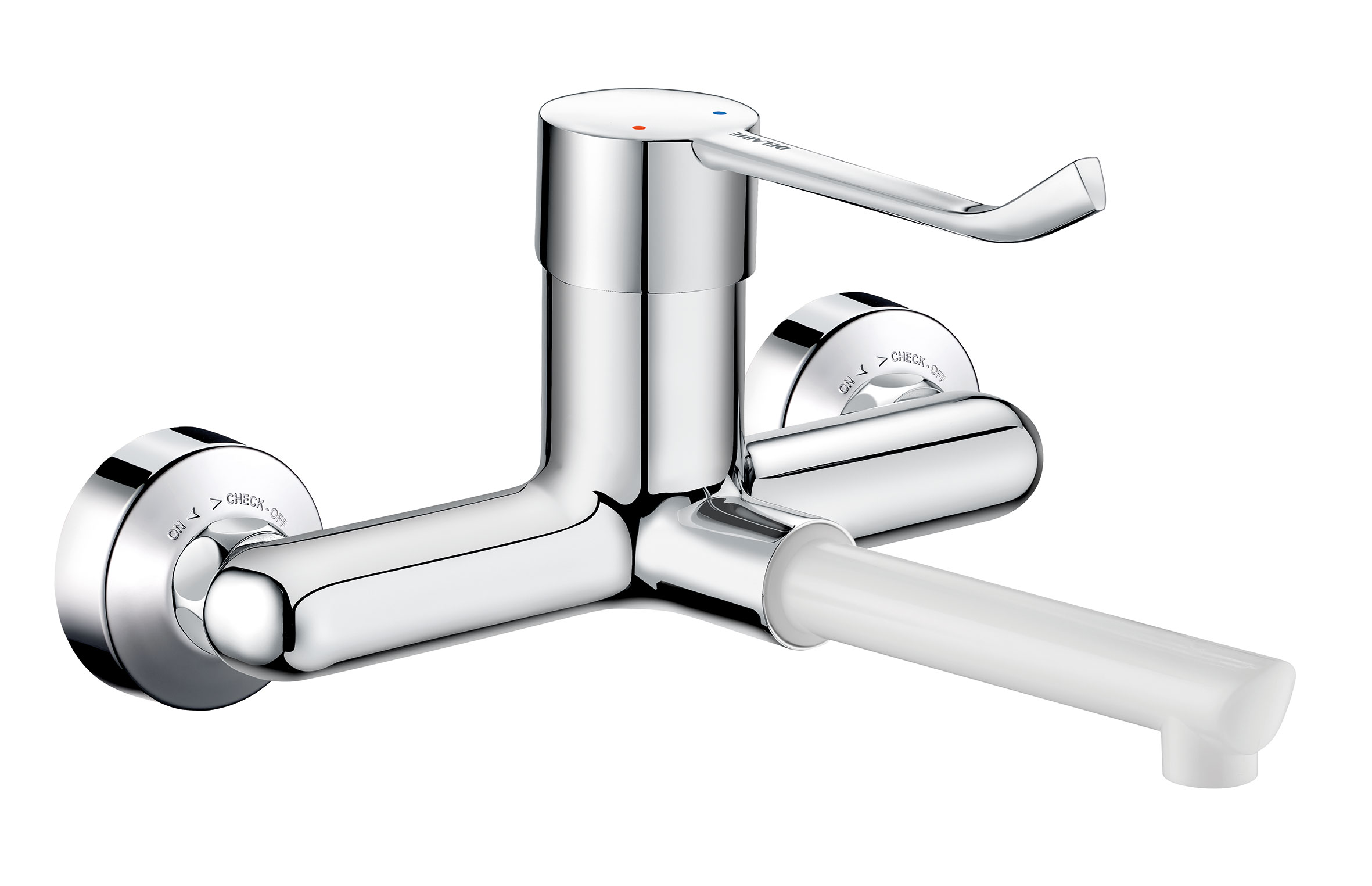 Mitigeur mural livré avec 1 bec jetable déclipsable jetable en Hostaform® recyclable L.125.